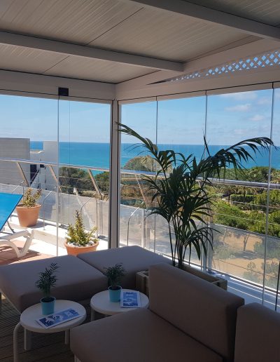 • Vidrios sujetos a perfiles con tornillos y adhesivo.